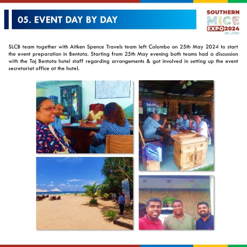 with the Taj Bentota hotel staff regarding arrangements & got involved in setting up the event