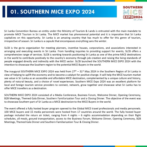 people engaged directly and indirectly with the MICE sector. SLCB launched the SOUTHERN MICE EXPO 2024 with the
