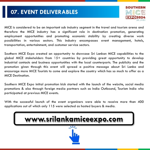 Southern MICE Expo created an opportunity to showcase Sri Lankan MICE capabilities to the